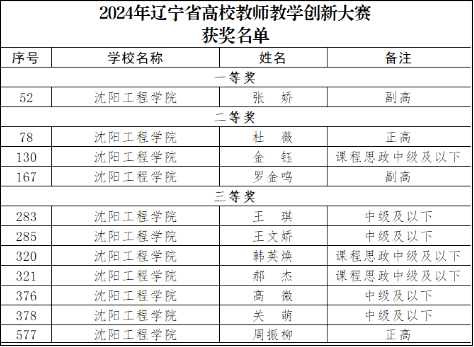 辽宁省教育厅近期下发了《关于公布2024年辽宁省教师教学创新大赛获奖名单的通知》(辽教通〔2024〕368号),我校教师及团队喜获佳绩。其中,我院郝杰、关萌荣获三等奖。我校张娇老师荣获一等奖,杜薇、金钰、罗金鸣老师荣获二等奖,王琪、王文娇、韩英焕、郝杰、高微、关萌、周振柳老师荣获三等奖。