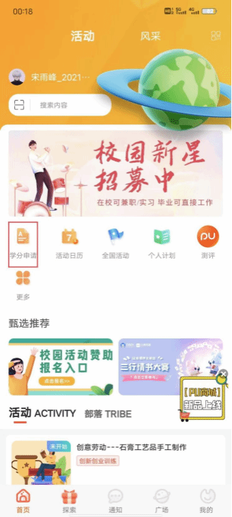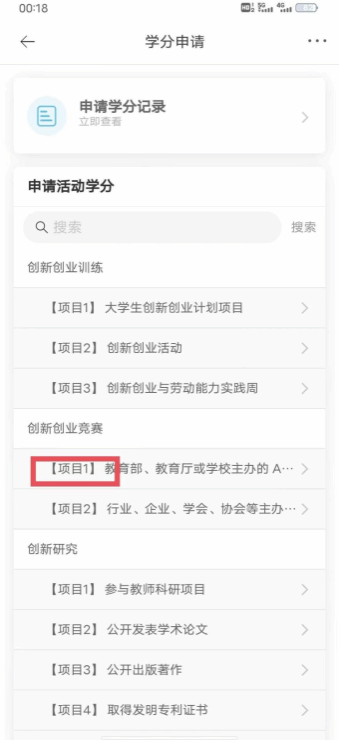 4. 根据自己的获奖情况选择自己申请的学分名称填写自己的竞赛名称