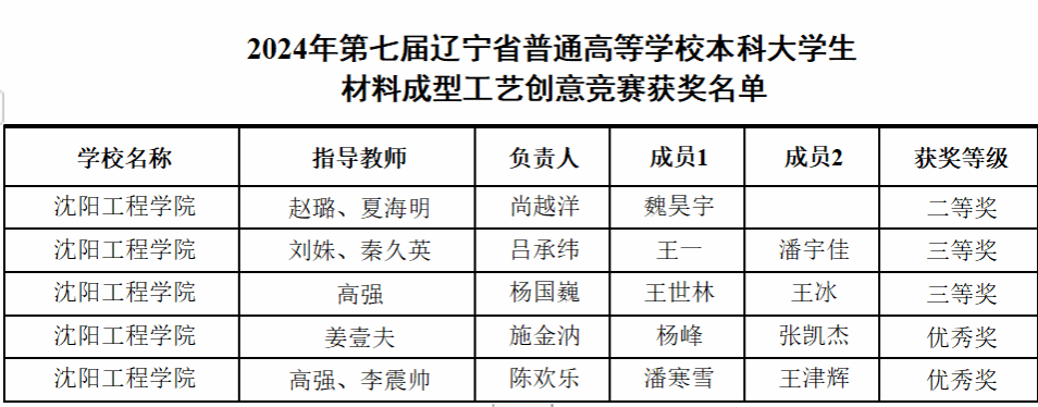 在刚刚落幕的“2024年第七届辽宁省普通高等学校本科大学生材料成型工艺创意竞赛”决赛中,我校同学针对赛题,构思、设计、仿真与实践验证,最终5支队伍入围决赛,获奖名单如下: