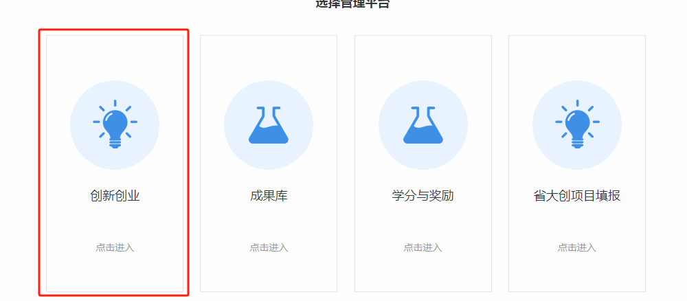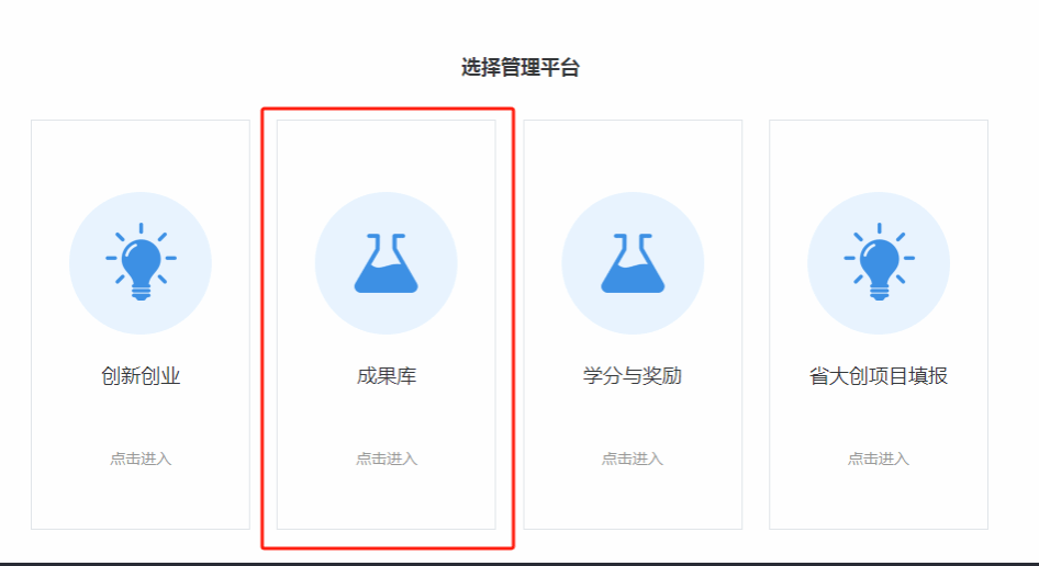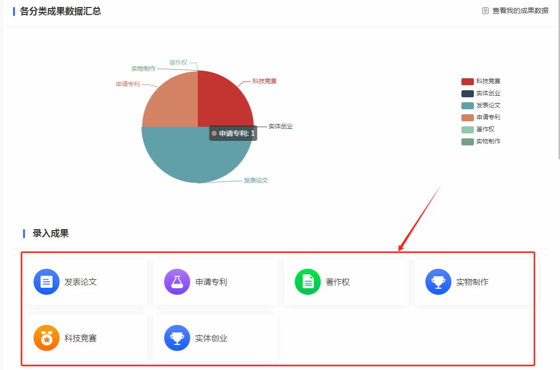 在“我的大创”“成果录入”版块选择成果。