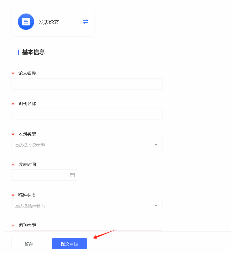 根据成果设置进行填报,填报完成后,点击“提交审核”。