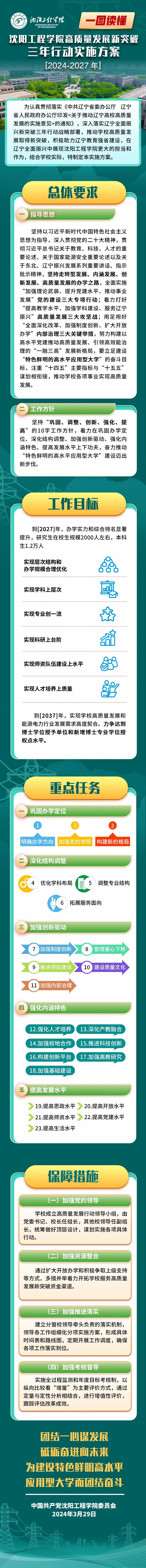实干才能兴校,奋斗就有回报!学校发展正处于大有可为的重要机遇期和必须有所作为的关键节点,实施高质量发展新突破三年行动是破除体制机制障碍、破解重点领域突出问题、擘画高质量发展新愿景、凝聚干事创业新共识的破题之举。让我们更加紧密团结在以习近平同志为核心的党中央周围,在辽宁省委、省政府的正确领导下,省委教育工委、省教育厅悉心指导下,以无愧于历史、无愧于时代、无愧于未来的执着与努力,凝聚起同心共筑沈工程梦的强大合力,以一域之光,为全局添彩!为辽宁全面振兴、全方位振兴贡献沈工程智慧和力量!