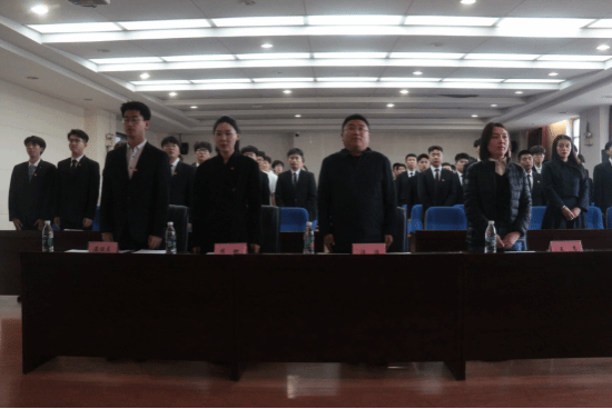 庄严的国歌声响起,全体与会代表合唱国歌,大会拉开序幕。