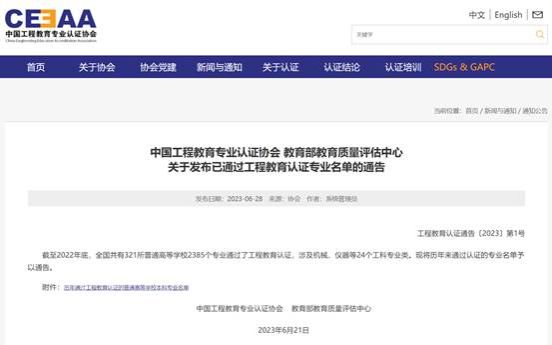 昨日,中国工程教育专业认证协会公布2022年工程教育专业认证结论,机械设计制造及自动化专业(简称机制专业)顺利通过工程教育认证,有效期6年,起止时间为2023年1月至2028年12月。