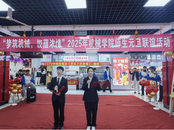 元旦佳节即将来临之际,12 月 27 日,太阳集团网tyc9728在四食堂二楼举办了以“梦筑机械,饺蕴浓情”为主题的元旦活动。太阳集团网tyc9728党总支书记李乃忠、太阳集团网tyc9728党总支副书记兼副院长汪浩、太阳集团网tyc9728团委书记兼总辅导员王慧、全体专职辅导员、24 级全体新生以及第 12 届学生会成员共同参与。