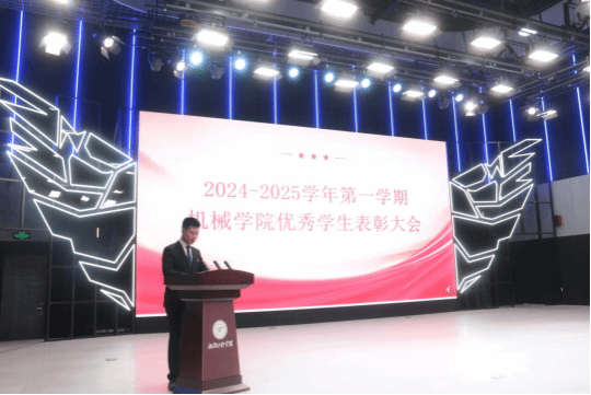 为激励广大学生干部积极进取,发挥模范带头作用,弘扬校园正能量,我院于 12月 4 日在I座报告厅举办了2024学年学生表彰大会。机械学院党总支副书记兼副院长汪浩、机械学院团委书记兼总辅导员王慧、机械学院辅导员和部分学生代表出席此次会议,会议由机械学院第十一届主席团成员侯嘉旋主持。