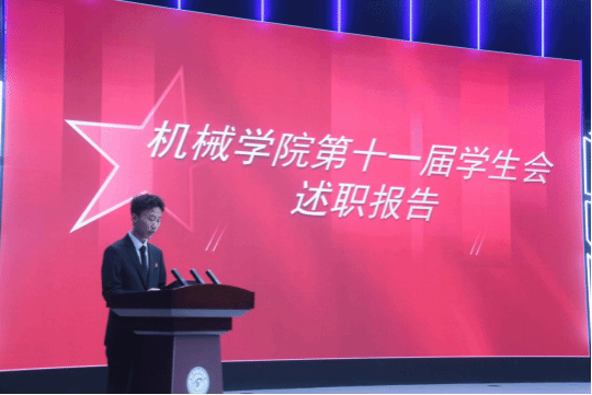 随后,机械学院第十一届学生会主席团成员冯展鹏进行发言,他回顾了过去一年里学生会的工作点滴,对获奖同学表示祝贺,并鼓励全体同学以他们为榜样,积极投身到校园建设与自我成长中,言语间充满了对未来的憧憬与对同学们的殷切期望。