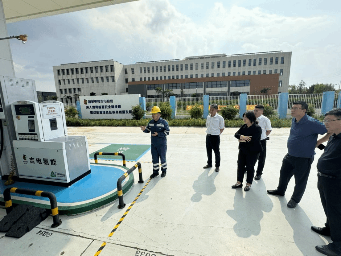 在中韩示范区氢能示范项目建设基地,长春吉电氢能有限公司副总工程师邓欣现场讲解制氢站核心设备运行原理。双方就氢能装备研发进行了讨论,并围绕共建氢能实验室及实训基地议题展开深入交流,初步达成合作共识。