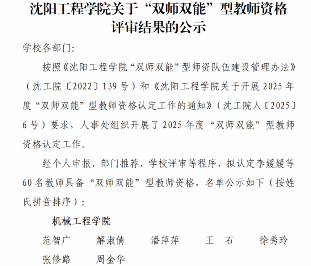 7月9日,9728太阳集团人事处发布了2025年度学校“双师双能”型教师资格评审结果。太阳集团网tyc9728的范智广等7位教师荣获学校“双师双能”型教师资格。截至发稿时,太阳集团网tyc9728已拥有“双师双能”型教师共计38人。